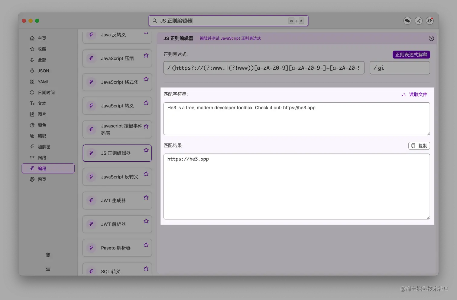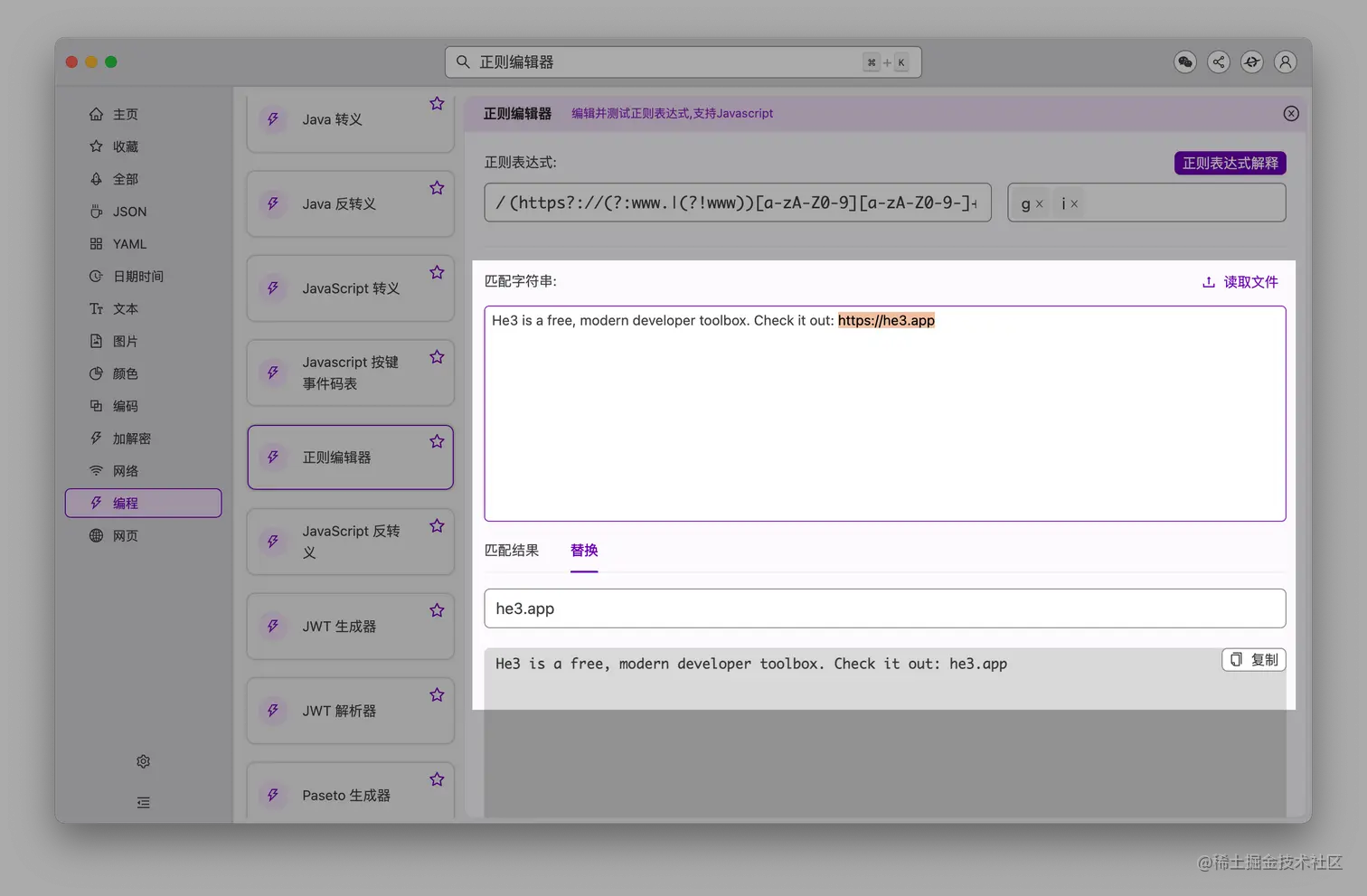 当你复制了一段 URL,比如 https://he3.app/zh/: