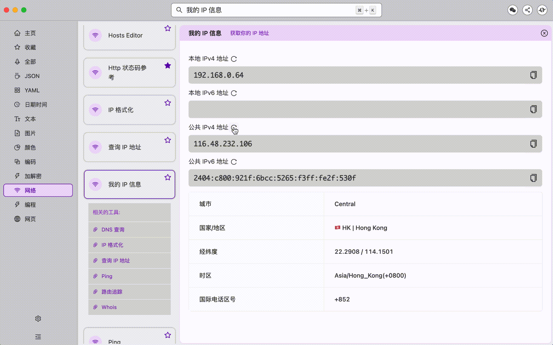 - 「我的 IP」支持刷新功能