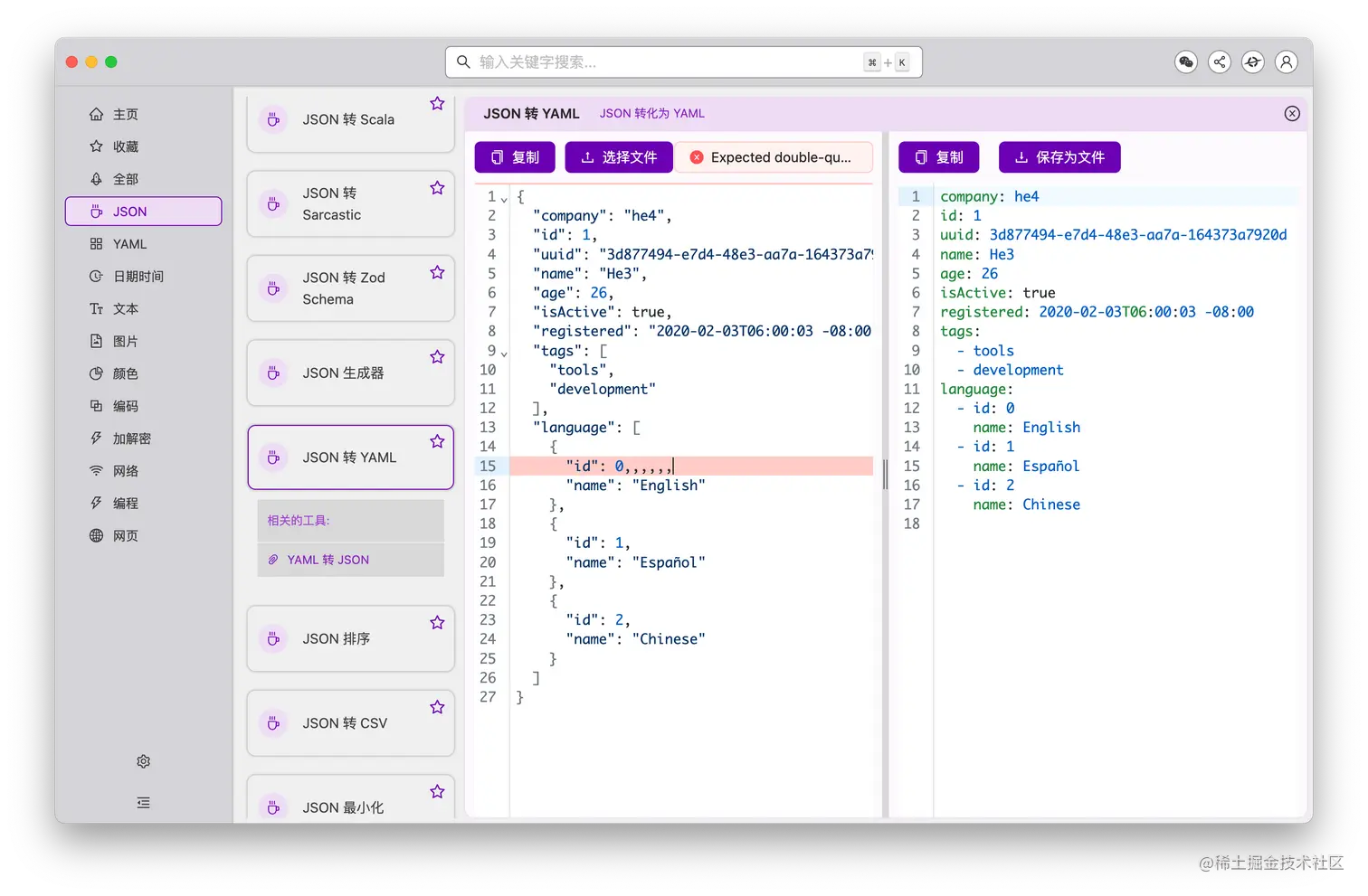 - 「JSON 和 YAML 转换工具类」支持错误提示和错误行高亮
