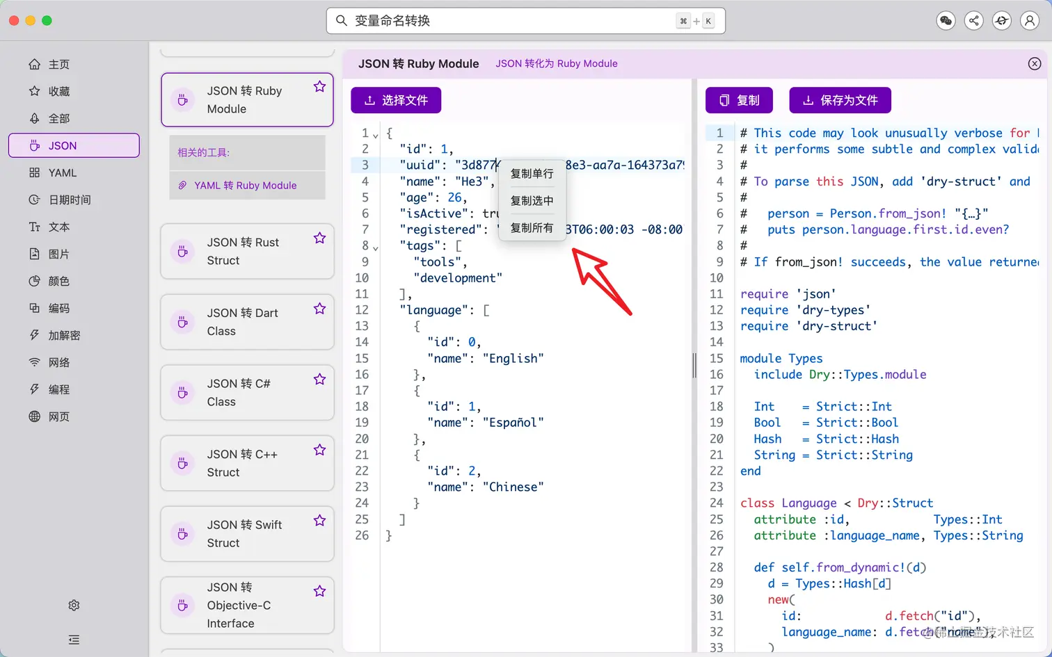 右键支持快捷复制选项