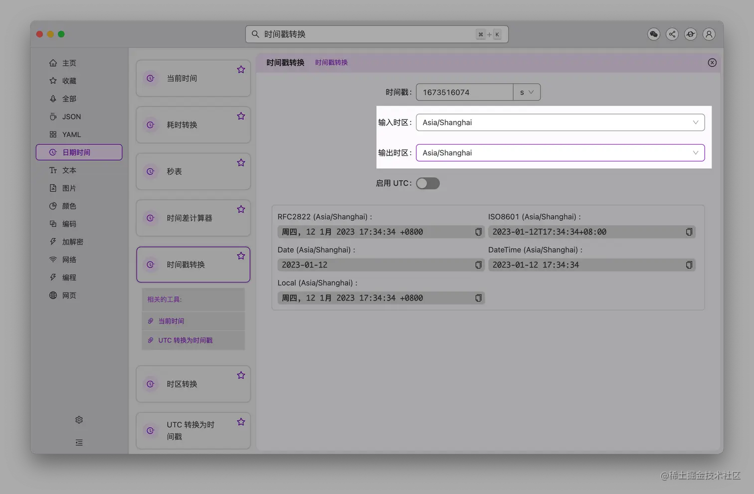 - 「时间戳转换」支持选择不同时区