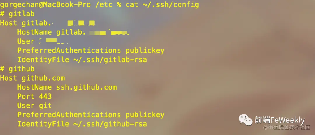 大多数时候,我们的机器上会有很多的git host,比如公司gitlab、github、oschina等,那我们就需要在本地配置多个ssh key,使得不同的host能使用不同的ssh key ,做法如下(以公司gitlab和github为例):