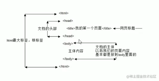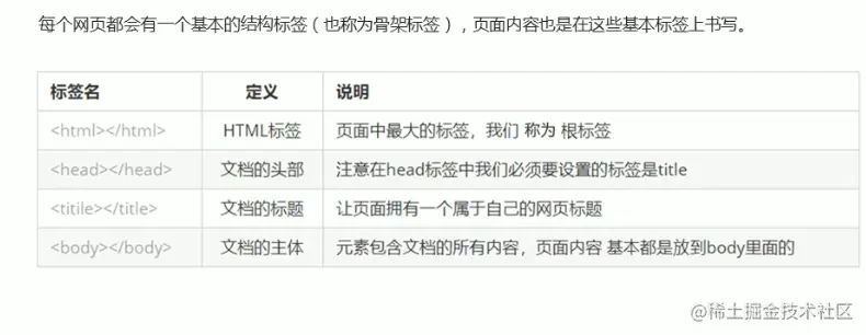 每个网页都会有一个基本的结构标签(也称为骨架标签),页面内容也是在这些基本标签上书写。HTML页面也称为HTML文档。