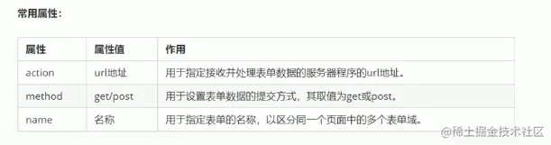 <form action="URL地址" method="提交方式" name="表单域名称">