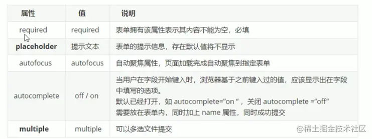 - name和value是每个表单元素都有的属性值,主要给后台人员使用
