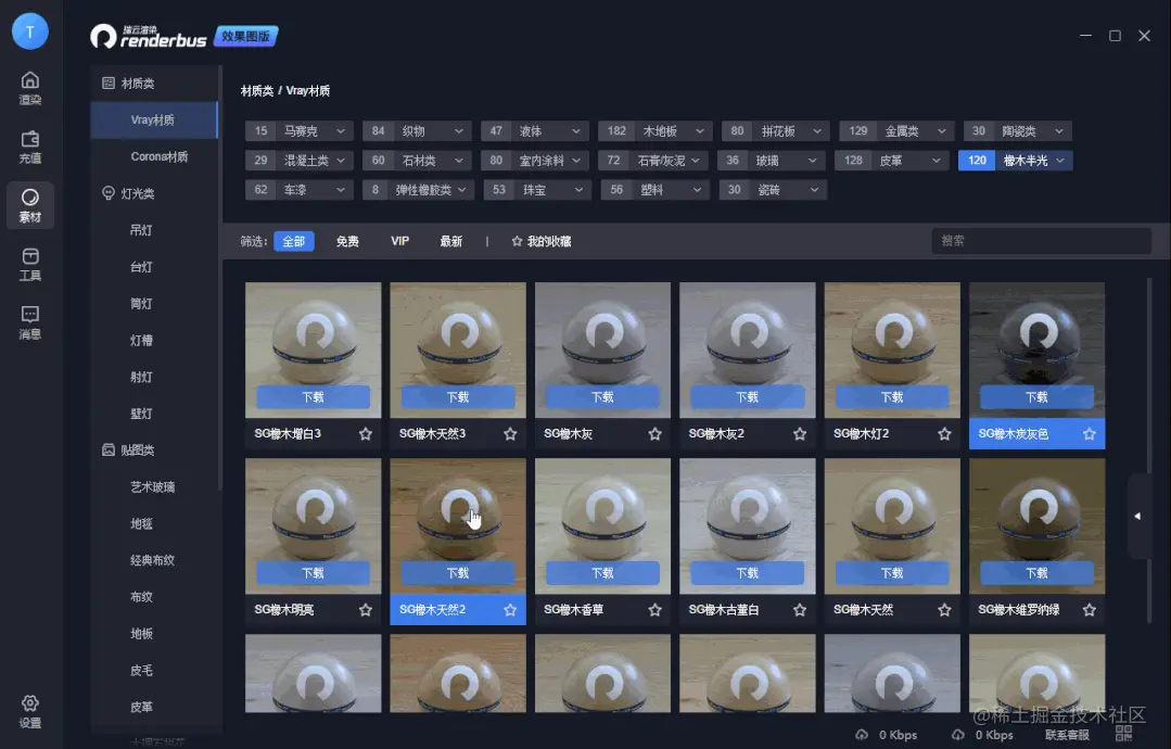 功能方面,客户端新增免费素材库、还新增了全景预览功能,查看效果图更加方便快捷,效果图用户还可以在Renderbus小程序下载渲染结果啦!
