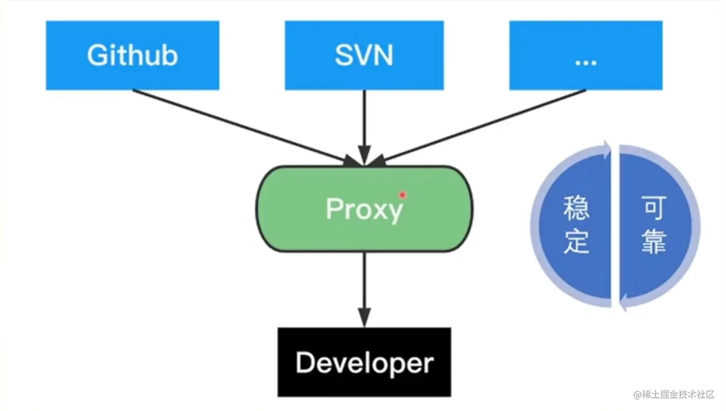 常见的依赖是 Github、SVN 等,但是如果直接依赖代码托管平台可能会存在以下问题: