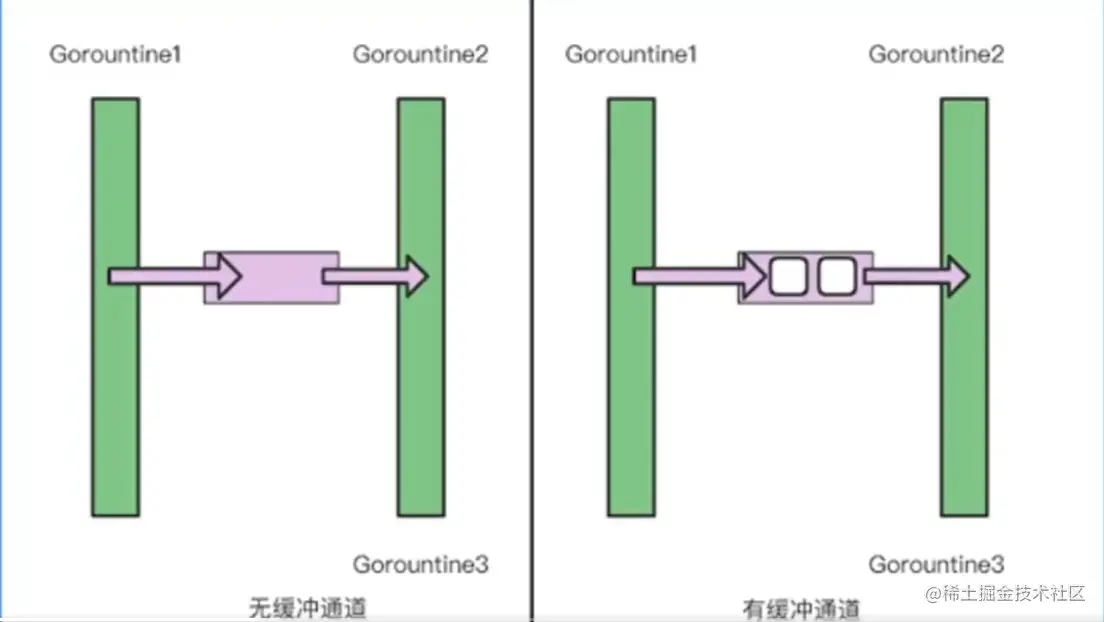 - 无缓冲通道(同步通道) make(chan int)