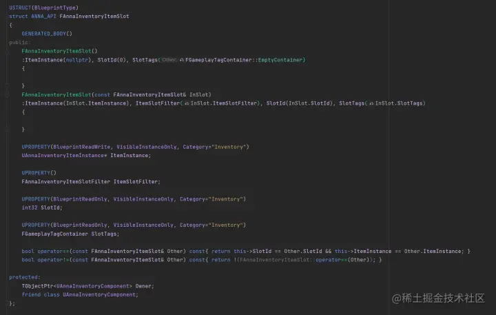 - Owner为持有插槽的Inventory Component的指针,即持有插槽的背包。