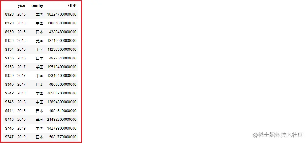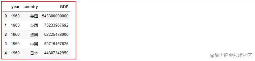 china_gdp = df[df.country=='中国'] # df.country 选中名为country的列