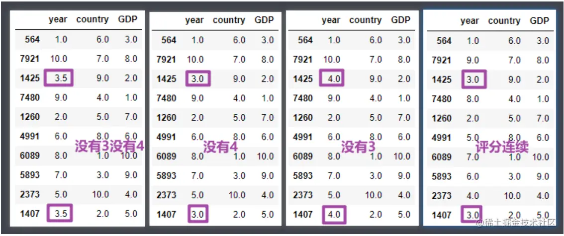 - min : 排名评分不连续;数值相同的评分一致,都为最小值