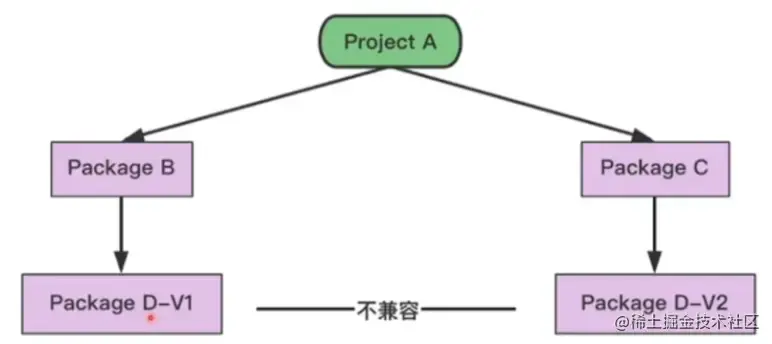 存在的弊端:无法实现package的多版本控制,如果需要package的多个版本,则无法兼容