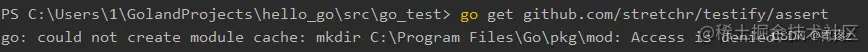 提供管理员身份在终端该go文件目录下执行go get github.com/stretchr/testify/assert,不然会报权限的错误
