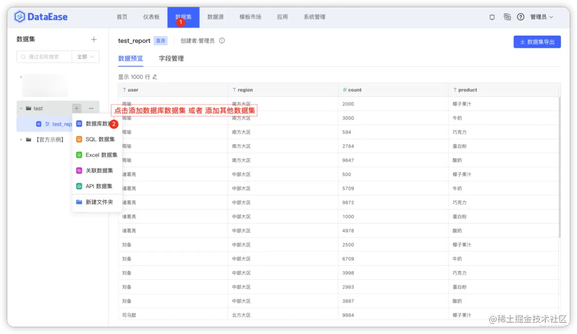 详细的使用教程参考 DataEase 官方文档: