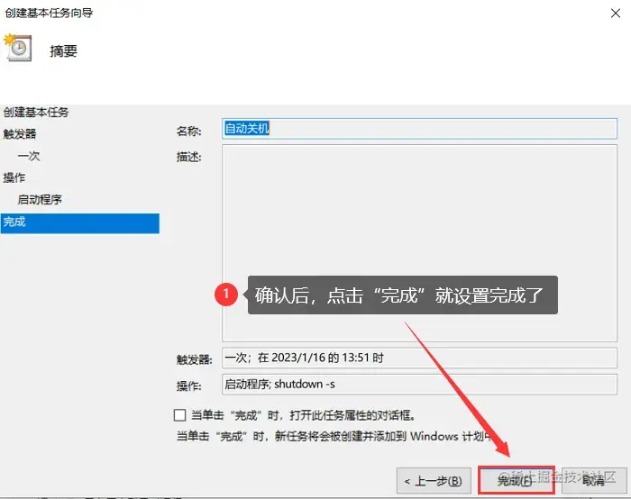 步骤5: 接着是确定电脑关机的时间,比如图片上的【2023年1月16日13点51分40秒】,单击【下一步】;