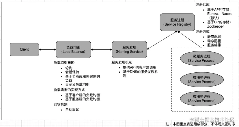 分布式架构是将一个庞大的单体应用拆分成多个独立运行的进程,这些进程能通过某种方式实现远程调用,因此,分布式架构要解决的第一个核心技术问题就是独立进程之间的远程通信。该问题的最早答案就是RPC技术(Remote Procedure Call),一种典型的微服务架构平台的结构示意图如下: