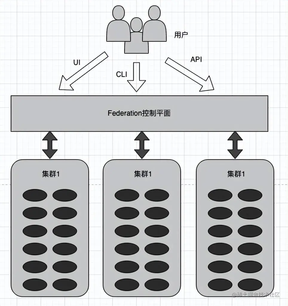 Federation是Kubernetes的子项目,其设计目标是对多个Kubernetess集群进行统一管理,将用户的应用部署到不同地域的数据中心。Federation引入了一个位于Kubernetes集群只上的控制平面,屏蔽了后端各k8s子集群,向客户提供了统一的管理入口,如下图: