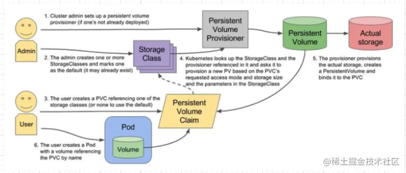 StorageClass和PV、PVC之间的运作关系如下图所示: