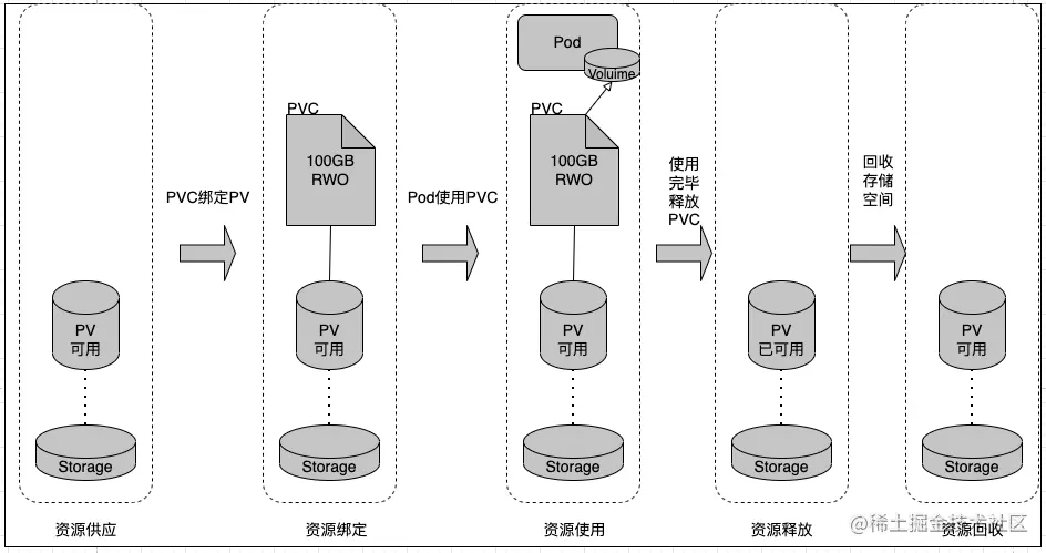 PV和PVC相互关系生命周期如上图所示,k8s的共享存储供应模式包括静态模式(Static)和动态模式(Dynamic),资源供应的结果就是创建好的PV。运维人员手动创建PV就是静态,而动态模式的关键就是StorageClass,它的作用就是创建PV模板。