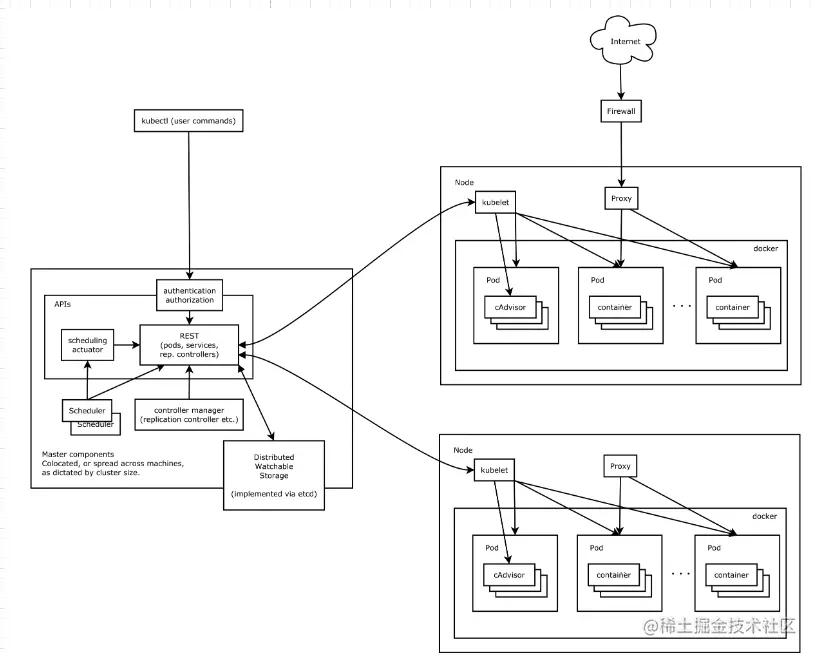 - kubelet负责维护容器的生命周期,同时也负责Volume(CVI)和网络(CNI)的管理;