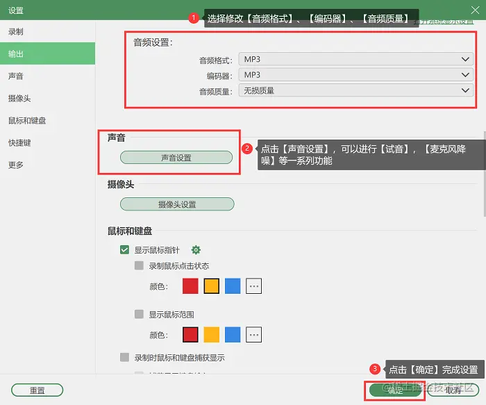 (注:如果需要录制不同格式的音频文件,可以点击“小齿轮”图案,进入高级设置的界面进行设置。)