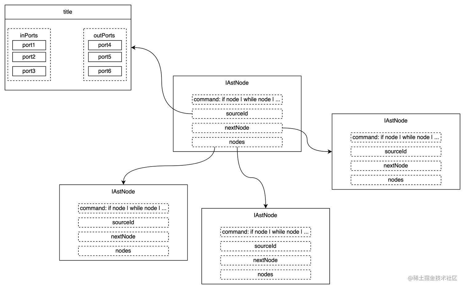 转换端口连接为 AST 节点的连接,赋予语法属性,比如哪些是流程的下一个节点,哪些是输入节点,哪些是分支节点等