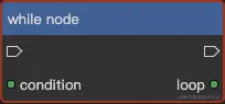 while node 语句:用于迭代逻辑,condition 节点连接判断迭代条件节点,loop节点连接循环体