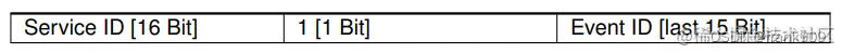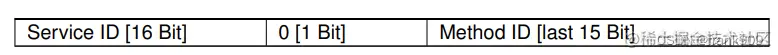 Method ID 和 Event ID 占据低位 15 Bit,中间 1 Bit用来区别两者,高位 16 Bit 代表 Service ID。