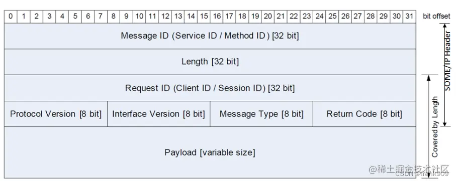 所有的 SOME/IP Header 内容采用大端传输(big endian)。 而 Payload 中的数据存放顺序通过配置设置。