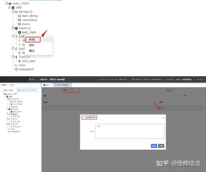 删除redis字符串列表中某个value,选择所选行删除即可。