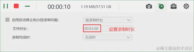 **步骤3.**在录制过程中,可以设置录制时长,到了预设时间,录屏会自动停止;还可以使用画笔、聚焦框等工具对录屏内容进行标注。录制结束后,在跳出的预览页面,您可以对录屏文件进行简单剪辑,还可以点击【高级剪辑】进一步剪辑视频,接着点击【完成】按钮,视频会自动保存到电脑上。