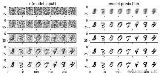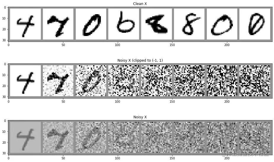在我们的玩具示例中,我们让模型尝试预测去噪图像。在 DDPM 和许多其他扩散模型实现中,模型则会预测损坏过程中使用的噪声(在缩放之前,因此是单位方差噪声)。在代码中,它看起来像是这样: