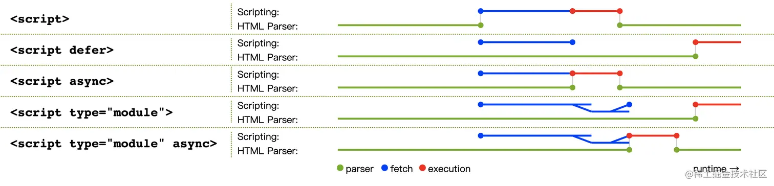 document.write(),可以在<script>标签上添加async或defer属性。这样浏览器就会异步运行JavaScript代码,不会阻塞解析。合适的话,可以考虑使用JavaScript模块(t.cn/RDXCctZ)。再比如,<link rel="preload">告诉浏览器该资源对于当前导航绝对必要,应该尽快下载。关于资源加载优先级,可以参考这里:t.cn/EVlIx31。