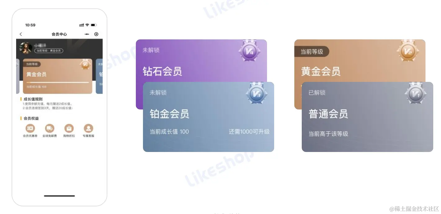 会员根据设定好的等级成长值升级,等级成长值通过日常消费来积累,如下图所示: