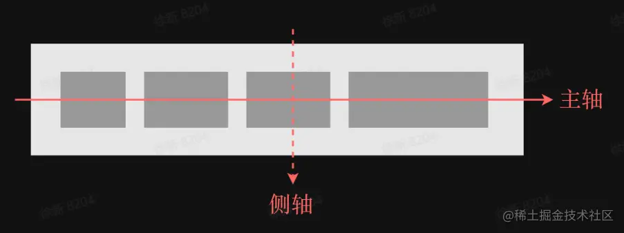 flex-direction,控制盒子的摆放方向,方向为主轴,与主轴相交的轴为侧轴