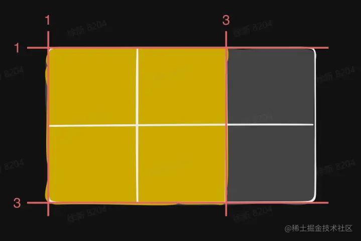 /* 分成多少列 */ /* 分成3份,分别为100px、100px、200px */ grid-template-columns: 100px 100px 200px; /* 分成3份,分别为容器的30%,容器的30%,剩下的自动分配,即40% */ grid-template-columns: 30% 30% auto; /* 分成多少行 */ /* 分成5份,分别为100px、200px,剩下的按照1:1:2分配 */ grid-template-rows: 100px 200px 1fr 1fr 2fr; /* 分成3份,1:1:1 */ grid-template-columns: repeat(3, 1fr); -