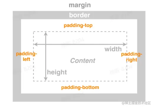 content指盒子的主体内容区域,盒子内元素存放位置,可以指定宽高