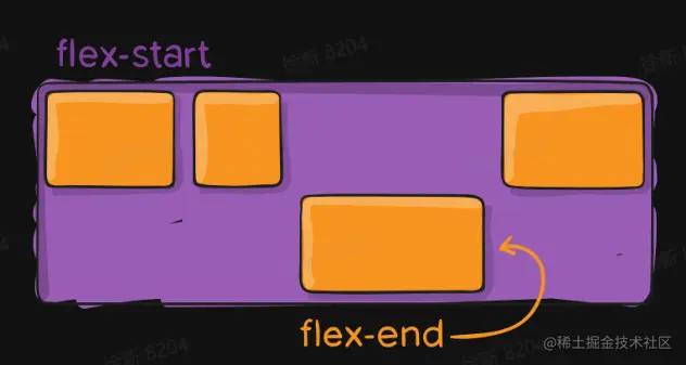 align-self,在每子元素身上设置,控制该元素侧轴方向上的对齐