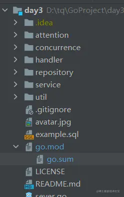 用java的工程开发去介绍go的工程开发,Java是可以用maven来进行比较好的生态配置开发,而go就是用的GO111module 会在项目生成go.mod相当于java的pom.xml来完成工程开发。 下面如图所示java和go的工程编写