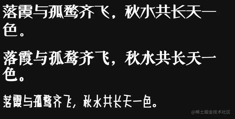 <h1 style="font-family: f2, serif">落霞与孤鹜齐飞,秋水共长天一色。</h1>