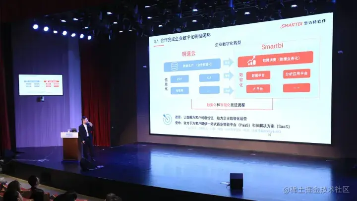 明道云提供底层能力,开放拥抱各类细分领域的优秀产品,并完成产品深度的集成,这一直是明道云坚定不移的设计方向。很多大型企业在建设组织信息化能力时,都会引入BI技术,提升业务部门的数据洞察能力,以数据驱动业务发展。明道云的合作伙伴思迈特软件也来到现场,介绍思迈特的产品特点与解决方案,以及思迈特与明道云的融合示例。