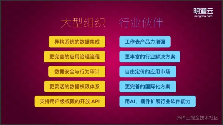 着力解决大型客户的实际问题,与伙伴联合解决行业客户的实际问题,是明道云2023年的产品迭代方向。在这个主旋律下,产研团队将重点实现十项产品能力,增强明道云的核心竞争力。