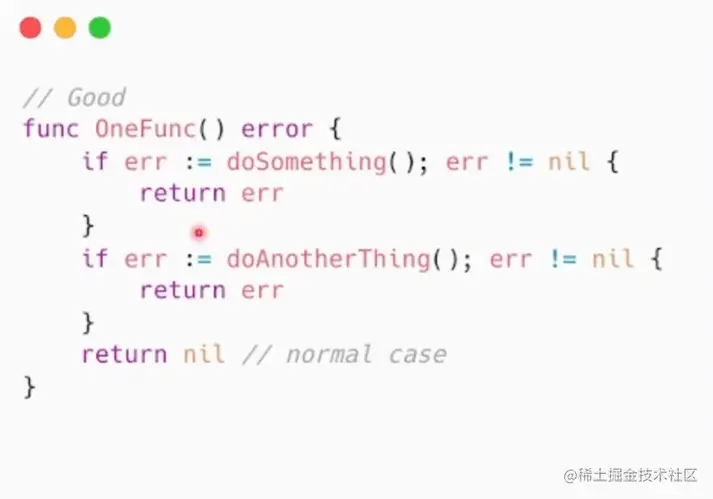 - 线性原理,处理逻辑尽量走直线,避免复杂的嵌套分支