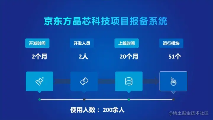 目前,京东方晶芯科技的项目报备系统已经在投入使用了,非常非常地棒。我们的开发时间其实只有不到两个月;投入的人员也非常少,只用了两个人,而且不是技术人员。整个应用搭建工作非常轻松,即使业务人员不懂代码也没有问题。
