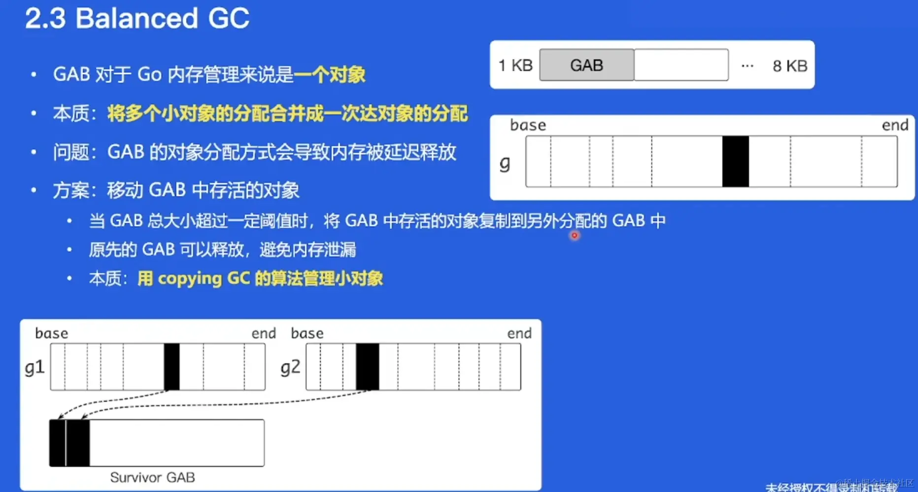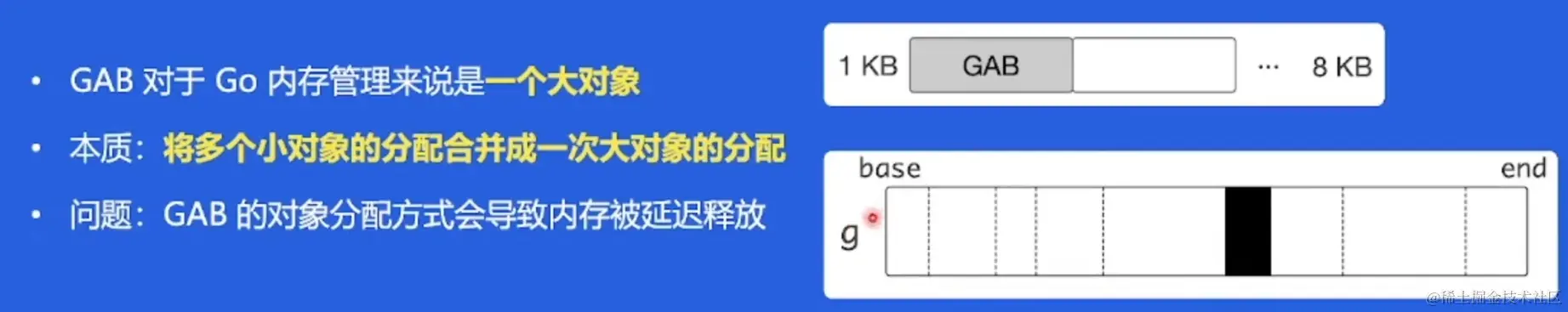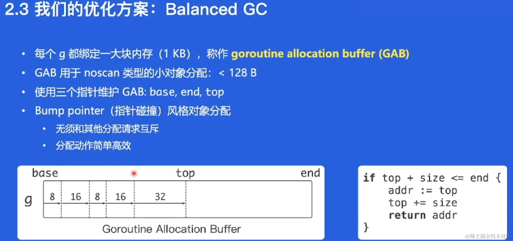 字节跳动给每个g(goroutine)分配一个GAB,类似于java的给线程预分配一个空间。GAB类似于一个大对象。