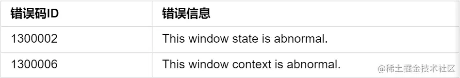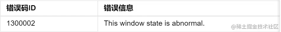 错误码:以下错误码的详细介绍请参见窗口错误码。