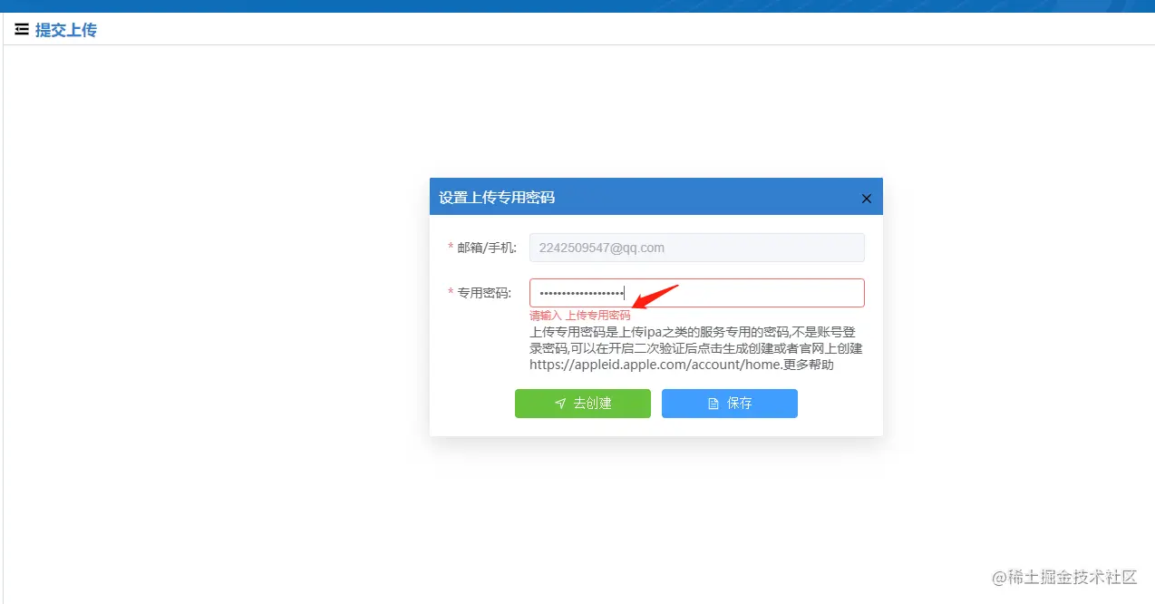 点击上传密码页面中的去创建,进入到苹果官网