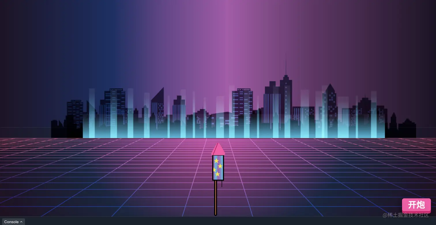 单单实现火箭炮怎么够呢,我又用了强大的CSS实现了烟花