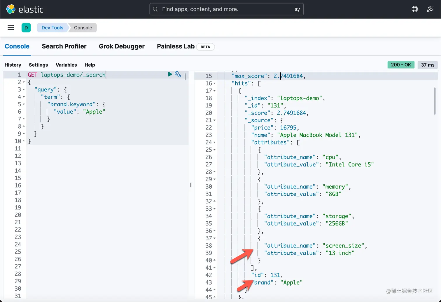 最后,我想介绍一下如何查询 nested 字段。 当你第一次看到查询时,它可能会非常吓人。 但是,如果你掌握了模式,你就不会被它吓到,可以在工作中自由使用。