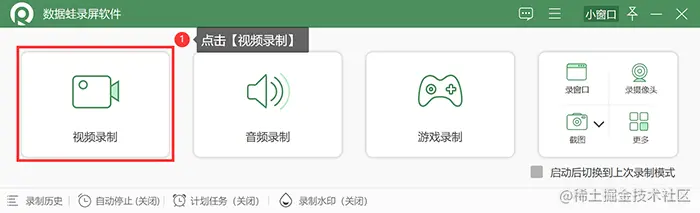 **步骤3:**完成设置后,点击左侧的【视频录制】。小伙伴也可以根据自身实际的录制需要,选择合适自己的录制模式。
